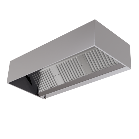 Zu den zusätzlichen Merkmalen dieser Würfelhaube gehören Hauben aus Edelstahl 18/10 AISI304 mit umgelegten Innenkanten und einem umlaufenden Kanal, der eine effektive Erfassung von Kochdämpfen gewährleistet. Die Labyrinth-Fettfilter sind leicht zu entfernen und zu reinigen, um einen stets optimalen Betrieb zu gewährleisten. Darüber hinaus ist diese Haube mit einem Fettablaufhahn für eine einfache Wartung ausgestattet.