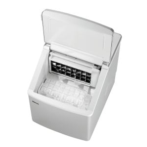 Praktisch und funktional produziert diese Eiswürfelmaschine effizient ganze Eiswürfel. Ihr Material aus Kunststoff gewährleistet eine hohe Haltbarkeit und erleichtert die tägliche Pflege. Darüber hinaus ist diese Eiswürfelmaschine kompakt mit Abmessungen von 280 mm Breite, 380 mm Tiefe und 345 mm Höhe.