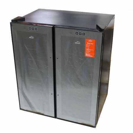 Der elektrische Weinkühler verfügt über 2 Glastüren und eine Innenbeleuchtung.