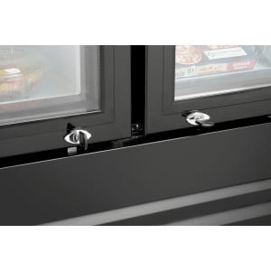 Er verfügt über 8 Zwischenböden mit den Abmessungen L 500 x T 485 mm und einem Abstand von 15 mm zwischen den Böden. Die Temperatur variiert von 0°C bis 10°C und von -18°C bis -23°C. Automatische Abtauungsfunktion, Verdunstung des Kondenswassers, digitale Anzeige, Innenbeleuchtung, Verriegelung und Ein-/Aus-Schalter.