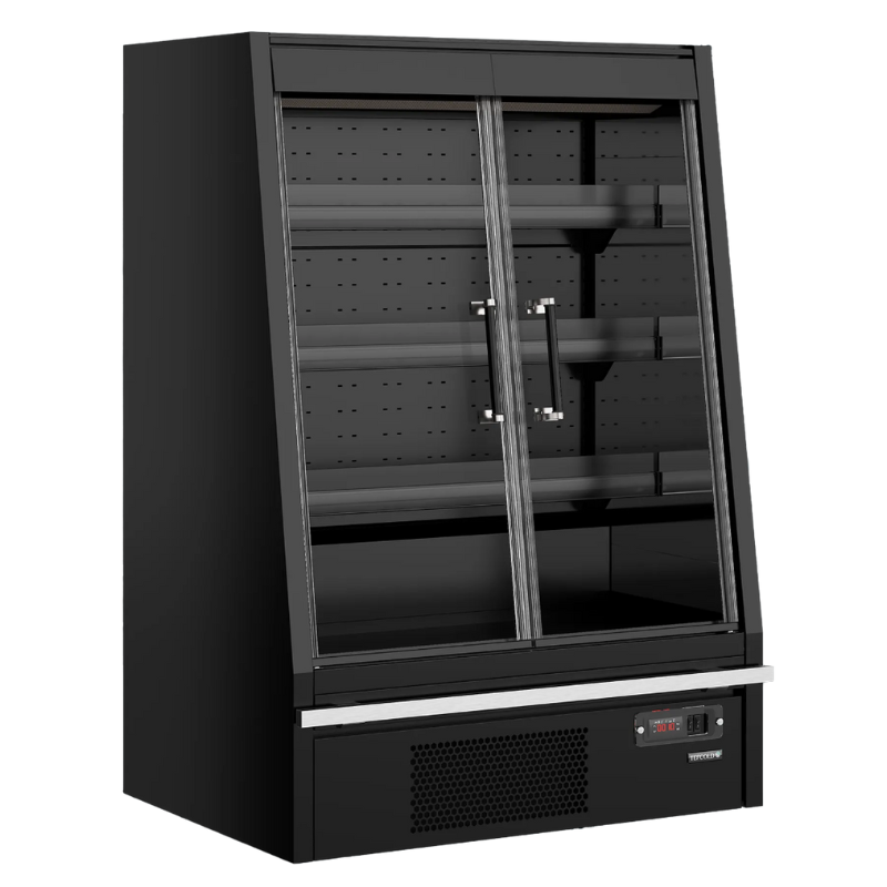 Entdecken Sie die schwarze Supermarkt-Kühlvitrine TEFCOLD, speziell entwickelt, um den Bedürfnissen von Küchenprofis gerecht zu werden. Mit ihren 3 Glastüren und einem Volumen von 1147 L bietet dieser Kühlschrank und Gefrierschrank eine praktische Lösung, um Ihre Produkte bei optimaler Temperatur zu lagern. Dank der Innenbeleuchtung werden Ihre Produkte elegant in Szene gesetzt. Die schwarze lackierte Außenverkleidung verleiht Ihrem Arbeitsbereich einen Hauch von Raffinesse.