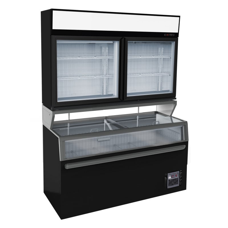 Die schwarze Supermarkt-Kühlvitrine 627 L vereint Eleganz, Funktionalität und Leistung und bietet eine ideale Lösung für Gastronomieprofis, insbesondere Caterer, die ihre Produkte unter besten Bedingungen präsentieren und gleichzeitig ihre Frische bewahren möchten. Mit einem Fassungsvermögen von 627 Litern und einem belüfteten Kühlsystem hält diese Vitrine eine konstante Temperatur zwischen 0 und 4°C und sorgt so für eine optimale Konservierung von Fleisch, Käse und zubereiteten Gerichten.