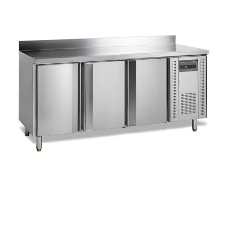 Entdecken Sie unseren Negative Kühltisch aus Edelstahl mit Aufkantung - 3 Türen - 345 L der Marke TEFCOLD, speziell entwickelt, um den Bedürfnissen von Küchenprofis gerecht zu werden. Dieser Kühltisch bietet ein Fassungsvermögen von 345 L und verfügt über bemerkenswerte Funktionen für eine optimale Nutzung.