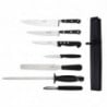 Ideal für professionelle Köche, dieses Set mit 7 Messern mit Etui aus Edelstahl wird in einem Etui mit 13 Fächern geliefert. Es enthält ein 20 cm Kochmesser, ein 15 cm Filetiermesser, ein 15 cm Ausbeinmesser, ein 7 cm Officemesser, einen 20,5 cm Hygiplas-Spatel, ein 25 cm Vogue-Schleifmesser und einen Vogue Econome. Spülmaschinenfest.