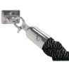 Dieses schwarze gedrehte Empfangsseil Bolero mit einer Länge von 1,5 m hat abgerundete Enden aus Edelstahl und Zinklegierung sowie eine weiche Textur. Ermöglicht die Schaffung eines eleganten Absperrsystems in Restaurants, Bars, Hotels, Clubs usw.