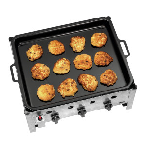 Mit einer beträchtlichen Leistung von 10.000 Watt und drei separaten Heizbereichen bietet dieser Gasgrill präzises und effizientes Kochen, sodass Köche mehrere Bestellungen gleichzeitig verwalten können, ohne Kompromisse bei der Qualität einzugehen. Die glatte Stahlplatte erleichtert nicht nur das Kochen verschiedener Arten von Lebensmitteln, sondern gewährleistet auch eine gleichmäßige Wärmeverteilung, was entscheidend für perfekte Kochergebnisse ist.
