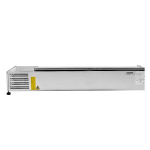 Mit einer beeindruckenden Kapazität von 7 GN 1/3 Behältern bietet dieses Gerät eine optimale Lösung, um verschiedene wesentliche Zutaten wie geschnittene Früchte, Gemüse oder Beilagen kühl und griffbereit zu halten. Das kompakte Design mit den Abmessungen von 1600 mm Länge, 395 mm Tiefe und 435 mm Höhe sorgt für eine einfache Integration in jeden Arbeitsbereich, ohne Kompromisse bei der Kapazität einzugehen.