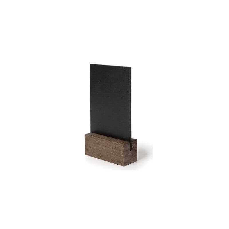 Der Ständer ist robust, aus Nussbaum gefärbter Buche und die Tafel ist abnehmbar für einen besseren Schreibkomfort.