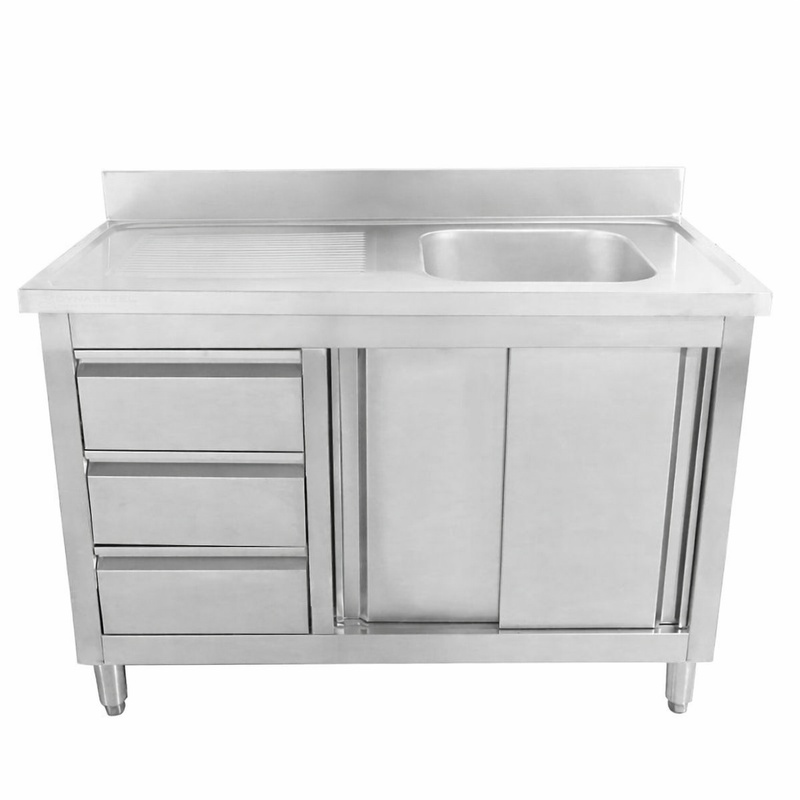 Ideal for commercial kitchens, this Stainless Steel Sink With Low Shelf 1 Basin 500x500x300mm has a standard worktop height of 850mm extendable up to 920mm. It is reinforced with 18mm melamine and has 40x40mm square stainless steel feet. It has a length of 700mm and a depth of 700mm. The sink is equipped with an adjustable foot for uneven floors.