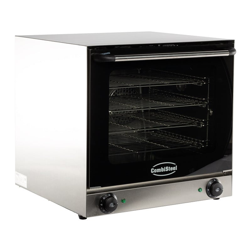 Ideal for catering professionals, this Slim Direct Injection Combination Oven in stainless steel with an electronic control panel, a double glazed door, and 2 self-reversing turbines. The interior is easy to clean. This oven has a temperature range of 30-280 ̊C for hot air and combined cooking, 30-110 ̊C for steam. It measures 517 mm in length, 820 mm in depth, and 770 mm in height.
