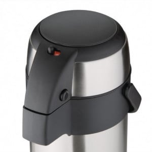 Ideal for catering professionals, this Pump Jug with a capacity of 2.5 liters is made of stainless steel, making it extremely durable. It features a double-walled vacuum-insulated design that ensures maximum temperature retention for up to 4 hours. Its large capacity reduces the number of refills per serving, and its swivel handle makes transportation easy. It measures 330 mm in height and has a diameter of 151 mm.