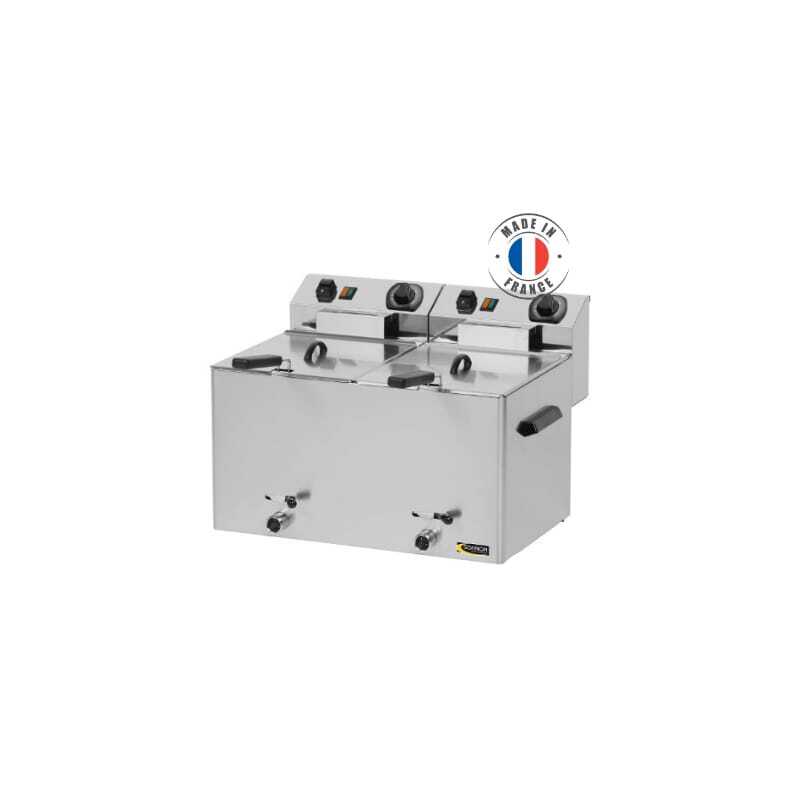 Buy this electric fryer and make delicious fries. This professional stainless steel fryer is available with a lid and has a synthetic control panel.