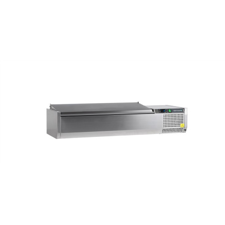 Optimize the efficiency of your kitchen space while ensuring the freshness of your ingredients with the Countertop Saladette Stainless Steel Lid - Static - 5 GN 1/4. Specifically designed for catering professionals, this product combines robustness and functionality thanks to its stainless steel exterior finish and high-quality features.