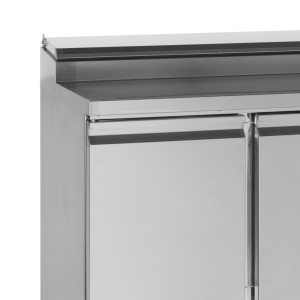 Equipped with 2 full swing doors, this saladette allows for automatic closure to maintain the freshness of the food. The adjustable shelves offer great flexibility to organize your workspace. You can easily adjust the height of the shelves to accommodate dishes, GN pans, and kitchen utensils.