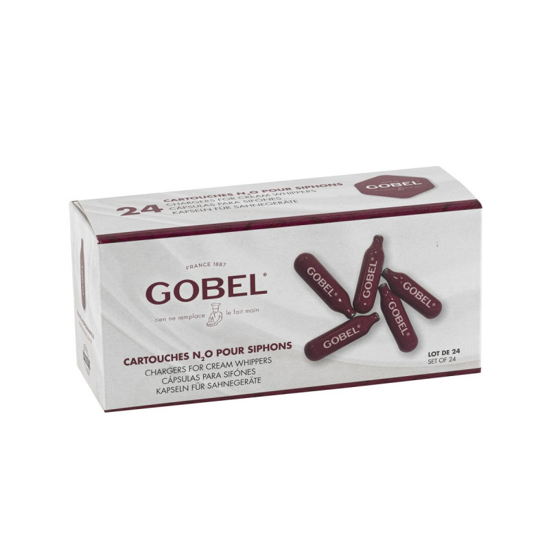 It features an aluminum head, a white aluminum siphon, and a cartridge holder. It comes with a set of 3 nozzles made of polypropylene and a cleaning brush. Not suitable for hot preparations. Works with cartridges (N₂O), not included.