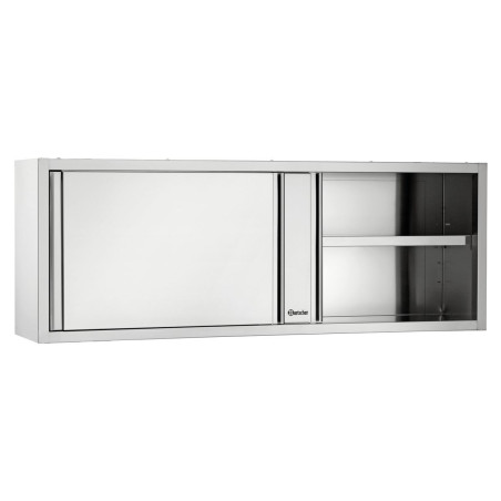 The Stainless Steel Suspended Cabinet PC 400 from the brand Bartscher is a professional kitchen furniture that is both robust and functional. Made of high-quality stainless steel, it offers a large storage capacity thanks to its two sliding doors. With its generous dimensions of L 1800 x D 400 x H 660 mm, it allows for efficient organization of the kitchen workspace.