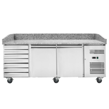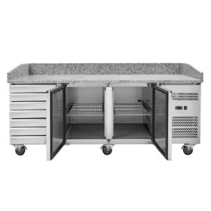 Designed to meet the speed and efficiency requirements of restaurant professionals, the Dynasteel Pizza Cabinet combines high performance and durability. Equipped with 2 full swing doors and 7 spacious drawers, this cabinet is a perfect solution for kitchens where space optimization and quick access to ingredients are crucial.