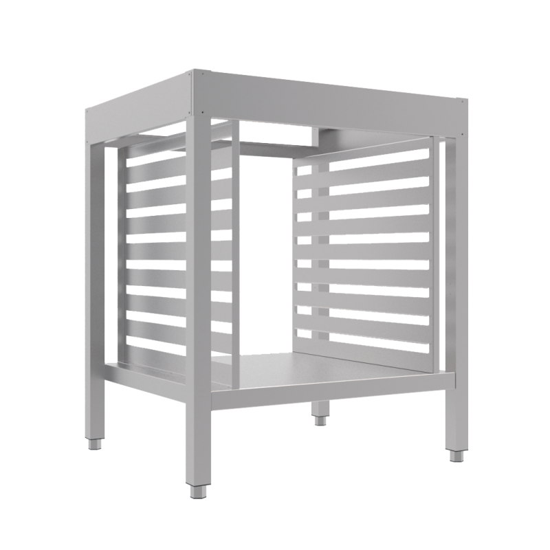 En résumé, le support pour fours à air chaud allie fonctionnalité, durabilité et design intelligent, en fournissant une solution de rangement pratique tout en améliorant l'efficacité des processus de cuisine. Un ajout essentiel pour toute cuisine professionnelle cherchant à optimiser son espace et à améliorer l'ergonomie de ses équipements.