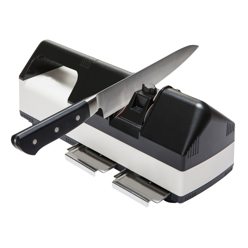 Cet Aiguiseur Professionnel à Couteau dispose de tiges d'acier chargées par ressort qui appliquent une pression optimale pour l'affûtage.