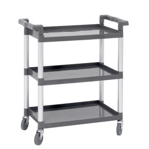 Chariot de service en matière synthétique, montants en aluminium, 4 roues.
