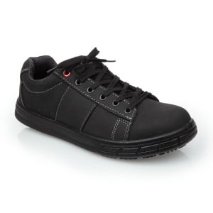 Ces Baskets de Sécurité Noires en cuir de la marque Slipbuster sont dotées de semelles anti-dérapantes. Idéales pour les environnements professionnels, elles sont proposées en taille 38.