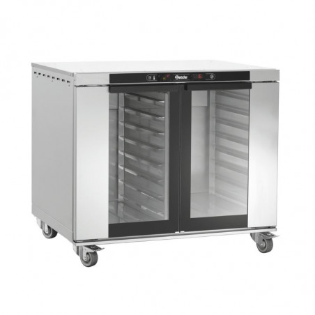 Idéale pour les boulangers professionnels et les chefs de restaurant, cette Armoire de Fermentation comporte 16 niveaux horizontaux de 600 x 400 mm, avec une distance de 70 mm entre chaque niveau. Elle est équipée d'un écran d'affichage qui permet de contrôler l'humidité de l'air, la température et la durée. Avec 2 roulettes et 2 roulettes pivotantes avec freins et un diamètre de roulette de 80 mm. Plage de température allant jusqu'à 50°C.