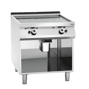 Elle est dotée d'un soubassement ouvert. Elle est idéale pour les professionnels de la restauration. Pour la version gaz l'allumage est Piézo-electrique et l'appareil est réglé pour le gaz naturel H.