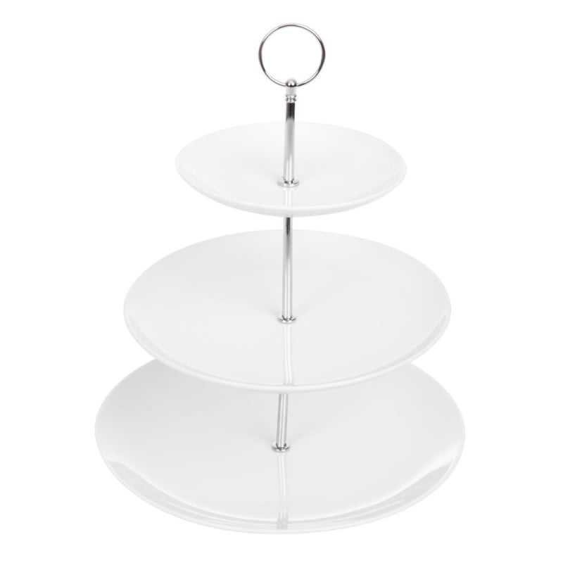 Le Présentoir à Gâteaux à 3 Niveaux de la marque Olympia est le complément parfait pour les restaurateurs à la recherche d'un moyen élégant et attrayant de servir des gâteaux et des hors d’oeuvres. Avec un poids de 1,37 kg et une hauteur de 355 mm, ce présentoir est fait de porcelaine et est idéal pour servir 3 niveaux de gâteaux ou de hors d'oeuvres en même temps.