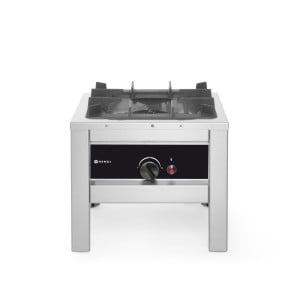 Équipé d'un thermocouple et d'un allumage électronique. Avec support-grille émaillé pour marmite. Livré complet avec tuyau de gaz et régulateur de pression. Peut être complété avec le châssis pour réchaud (HN147306), le cercle wok pour réchaud (HN147207) et le wok (HN626504).