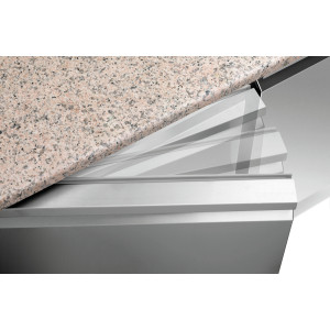La saladette a un plan de travail en granit pour éviter à la pâte de coller. Dotée de commandes électroniques et d'évaporateur des eaux de dégivrage.
