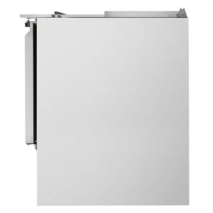 Son design ergonomique inclut un couvercle coulissant pratique qui permet un accès facile et rapide aux produits sans perte de froid significative, ce qui est idéal lors des services rapides et efficaces. De plus, la porte pleine battante renforce l'isolation et la sécurité du stockage.